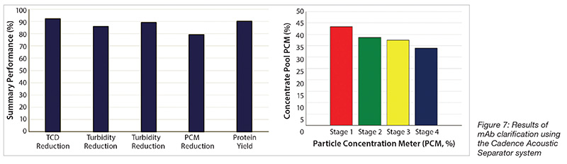Most important, clarification of a mAb cell culture fluid using the Cadence Acoustic Separator did not affect the quality of the antibody (Table 1) and proceeded with high transmission of the antibody through the system.